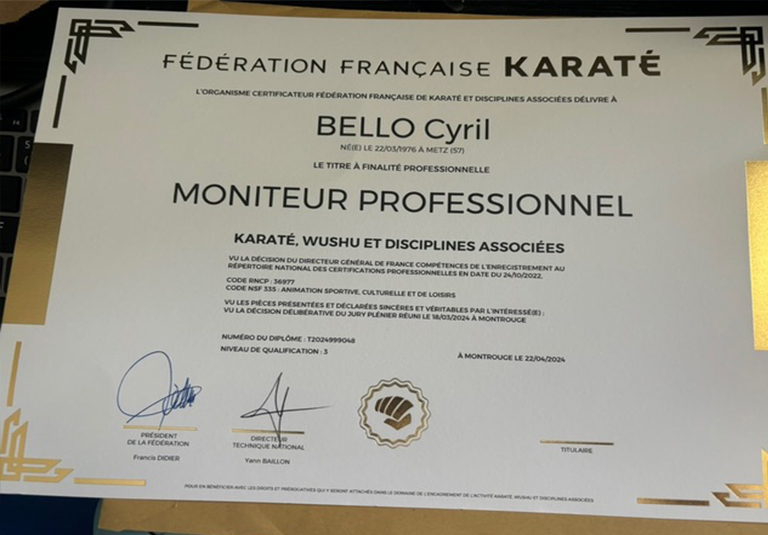 Ancien compétiteur karaté, titres régionaux, qualifications championnats de France.